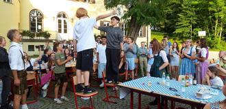 Der französisch-bayerische Abend im Brunnenhof am Freitag, 07.06.24 feierte bei strahlendem Sonnenschein den diesjährigen Frankreich-Austausch des LSH, der vom Deutsch-französischen Jugendwerk (OFAJ) unterstützt wird. Während bei der Woche in Frankreich im April bereits gemeinsame Schulbesuche und Exkursionen in den südlichen Alpen rund um die Partnerschule und in die Provence stattgefunden hatten, lernten die französischen Schüler die bayerische Schule, die Gegend um Berchtesgaden mit Salzbergwerk und Königsee und Ruhpolding mit seinem Biathlonstadion kennen. Gemeinsam entdeckten Deutsche und Franzosen München mit Altstadt, Olympiapark und BMW-Welt.
