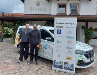 Links Bürgermeister Josef Loferer daneben der neue Schulbusfahrer Daniel Haltmayer