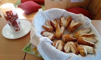 Zur Essensauswahl standen freitags Müsli, Joghurt, Obst, Vollkornbrot mit Quark, Butter, Frischkäse oder Käse und frisches Gemüse. Obst und Gemüse gab es dafür im Rahmen des „Schulfruchtprogramms“ der Chiemgau-Kiste, andere benötigte Lebensmittel wurden vom Kindergarten zugekauft oder selbst hergestellt. So hatten die Kinder ihren Spaß beim Backen von Semmeln oder Laugenhasen zu Ostern oder Rührei kochen. Nach der gemeinsamen Zubereitung der Brotzeit ließen sich alle die frischen und gesunden Speisen schmecken.