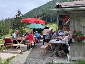 Elke und Achim Kohn, die früher sehr gern bis zur Dalsen Alm gelaufen sind, waren jetzt schon über vier Jahre nicht mehr oben, da sie den Weg mit 85 Jahren nicht mehr schaffen würden, genau wie die meisten Senioren. Elke erzählt, wie sehr sie von dem Ausflug begeistert war. „Wir wurden so nett empfangen, die Tische draußen waren gedeckt und Georg und Margot Mix haben uns sehr gut bewirtet mit kräftiger Unterstützung von Mirl und Elisabeth Anner. Wir konnten alle gemeinsam draußen sitzen und uns nach längerer Zeit mal wieder mit vielen unterhalten. Es war ein schönes Erlebnis und sehr gut organisiert“. Auch Klara Bachmann hat es sehr gut gefallen, sie war früher als Sennerin auf der Dalsenalm und hat damals noch Käse vor Ort hergestellt.