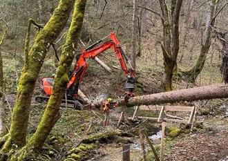 Neben den oben beschriebenen Arbeiten laufen aber auch andere, nicht minder wichtige Arbeiten. Neben der absolut traumhaften Kulisse hat Schleching vor allem eines, Bäume. Davon sehr viele. Nun ist das erst einmal nicht weiter schlimm, das Gegenteil ist der Fall. Aber anders sieht die Sache aus, wenn es darum geht, die Standsicherheit der im öffentlichen Bereich stehenden Bäume zu gewährleisten. Hört sich nicht weiter schlimm an, ist aber eine Mammutaufgabe will man den rechtlichen Anforderungen gerecht werden. Ein Mitarbeiter kümmert sich aufgrund seiner Vorbildung regelmäßig darum, problematische Bäume zu erkennen, zu bewerten und sofern erforderlich sicher zu fällen und zu entsorgen. Sei es letztes Jahr im Zuge der Sanierung der hinteren Achbergstraße, am Waldkindergarten, oder im Bereich des Schmugglerweges. Aber auch weniger präsente Bereiche sind regelmäßig Bestandteil dieser Sicherungsmaßnahmen wie unsere Steige und Wanderwege. Zwar greift hier das Unwort „waldtypische Gefahren“ und nimmt uns als Gemeinde etwas aus der Pflicht, sind unsere Steige und Wege doch ein Aushängeschild als touristischer Standort. Diese in regelmäßigen Abständen zu pflegen ist ein Bereich welcher vom Bauhof zu erledigen ist. Aber ist dies leider auch nicht immer möglich. Auch wenn wir den Spezialisten im Team haben, muss immer auch das Gefahrenpotential berücksichtigt werden. So kann der Wanderweg Buchberg-Wandl-Weg derzeit nicht geräumt werden. Zum einen handelt es sich hierbei um vollständig privates Gelände und zum anderen können die Bäume nicht gebracht werden ohne eine Eigengefährdung auszuschließen. Dieser Wanderweg, auch wenn er zu den schönsten von Schleching zählt, muss bis auf weiteres gesperrt bleiben.