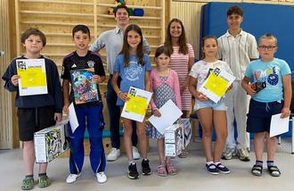 Kurz vor Ende des Schuljahres wurden in der Schlechinger Schule die Preisträgerinnen und Preisträger des 55. Internationalen Jugendwettbewerbs jugend creativ ausgezeichnet. Zur Begrüßung überlegte Konrektorin Bärbel Schmalfuß mit den Kindern, was sie zu dem Thema mit Buntstiften, Wachsmalkreiden und Deckfarben zu Papier gebracht hatten. Die unterschiedlichsten Bildideen waren ihnen zur digitalen Welt eingefallen: Spielstandsanzeige beim Eishockeyspiel, Staubsaugerroboter, Spielkonsolen, aber auch fantastische Ideen wie ein Apparat, der die ganze Hausarbeit macht. Mit bewundernden Worten für die Arbeiten der Kinder begrüßte Maria Haßlberger von der Volksbank Raiffeisenbank die jungen Künstlerinnen und Künstler. Gemeinsam mit Josef Bauer und Joschi Jelinski überreichte sie den stolzen Gewinnerinnen und Gewinnern ihre Urkunden und ihre Preise. 1./2. Klasse: 1. Sophie Reinbrecht, 2. Serafyma Yedynach, 3. Alexander Mix. 3./4. Klasse: 1. Pius Hörterer, 2. Elias Mehringer, 3. Mathilda Prasch. Natürlich gab es für alle, die mitgemacht hatten, einen Trostpreis.