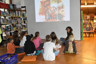 Die Ferienkinder lauschen den Worten von Barbara Prasch