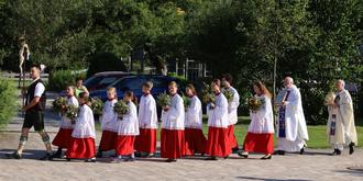 die kirchliche Feier musikalisch. Zum Abschluss wurden die mitgebrachten und von den Minitstranten zu Buschen gebundenen Kräuter von Pfarrer Straßer gesegnet und geweiht. Alle Anwesenden waren sichtlich begeistert von der schönen Feier, viele haben sich noch von den Ministranten die Kräuterbuschen mit nach hause genommen.