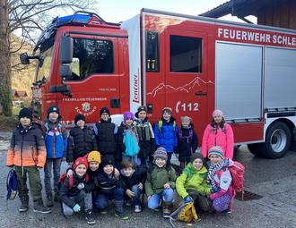 Nachdem das Thema „Feuer und Feuerwehr“ ausgiebig im Rahmen des HSU- Unterrichts behandelt wurde, war es endlich soweit und die 3. Klasse machte sich zu Fuß auf den Weg, um die Freiwillige Feuerwehr Schleching zu besuchen.