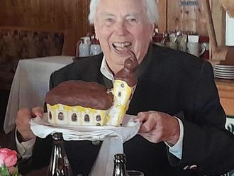 „Schleching sei für ihn Heimat, Freundschaft und Liebe“, meinte Cees bei der Begrüßung unter einer Girlande aus Jugendbildern. Nach vielen Jahren im Ausland lebte der Holländer 33 Jahre in Schleching. Der Kirchenchor unter der Leitung von Maria Blank und der Männerchor unter der Leitung von Sebald Bachmann trugen einige musikalische Ständchen vor. Pfarrer Martin Straßer sprach vor dem Festessen ein Dankgebet. Zu den Geschenken gehörten auch eine Orgelpfeife und die Texte der von Maria Blank auf ihn umgedichteten Texte der Lieder. Unter dem Applaus der Gäste schnitt Cees später den Geburtstagskuchen „Schlechinger Kirche“ an (gebacken von Annelies Wendrich). Ehefrau Carin verteilte ihn unter die Gäste. bre