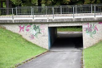 Die gefährliche Stelle in der Nähe des Spielplatzes an der Unterführung
