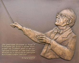 Der Grassauer Ehrenbürger Professor Wolfgang Sawallisch, wie ihn sein Denkmal am Wolfgang-Sawallisch-Platz in Grassau darstellt. Das Konzert zu seinem 100. Geburtstag am 12. November ist ein musikalischer Höhepunkt der Musikschule im Grassauer Kalenderjahr.
