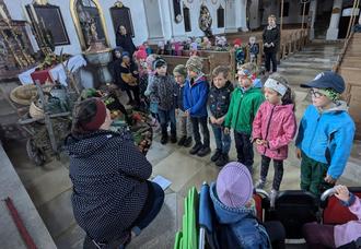 Ganz gespannt starteten die Kindergarten- und Krippenkinder am Montag, den 07. Oktober in die Schlechinger Kirche, um den reichlich geschmückten Altar zu bewundern. Als Dank haben die Vorschulkinder hierfür ein Gebet eingeübt, in welchem wir über das Korn sprechen, die zu so einer großen Pflanze wachsen, damit wir alle reichlich davon ernten können.