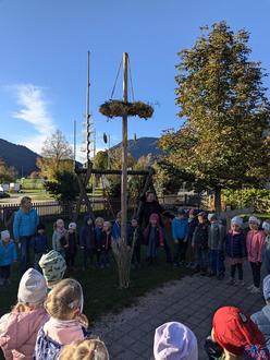 Mit dem Lied „Erntetanz“ dankten wir erneut für Karotten, Zwiebeln, Kürbisse, Paprika, etc. und verputzen in Anschluss bei der Brotzeit riesige, gefüllte Rohkostteller.