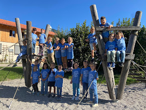 Jetzt gehören sie dazu: Die Erstklasskinder tragen voller Freude die Schul-T-Shirts, die sie vom Elternbeirat geschenkt bekommen haben. Vielen, vielen Dank.