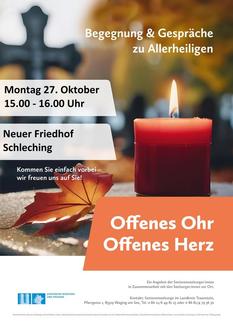 In den Tagen vor Allerheiligen besuchen viele Menschen die Friedhöfe, um die Gräber ihrer verstorbenen Angehörigen zu besuchen und zu schmücken. Die Erinnerung an die Verstorbenen und Trauer begleiten sie dabei. In manchen Friedhofsbesuchern bricht daher der Wunsch auf, mit jemandem zu reden.
