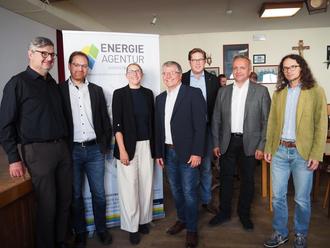 Energieagentur Südostbayern: v.l.n.r. Klaus Gottschalk (netCADservices), Dr. Ulrich Buchhauser (LENK), Bettina Mühlbauer (Energieagentur Südostbayern), Harald Rapp, Gunnar Maaß (beide AGFW), Michael Perkmann (Regionalwerk Chiemgau-Rupertiwinkel), Sebastian Osenstetter (RIWA) Energieagentur Südostbayern: Großes Interesse der Kommunen auf der Informationsveranstaltung kommunale Wärmeplanung im Postsaal in Teisendorf.