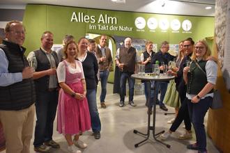 Im Anschluss wurde der Film über das Achental gezeigt und die Almenwelt Ausstellung angesehen. Die Gemeinderatsmitglieder und ihr Bürgermeister aus Kreuth zeigten sich begeistert, sie standen zusammen mit Josef Loferer, Elisabeth Keihl und Johanna Detsch von der Gemeinde Schleching und hatten viele Fragen und Diskussionspunkte. Heim gefahren sind sie mit einem süßen Gruß – einem Glas Honig von den Schlechinger Imkern. wun