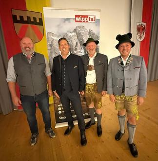Bild von links 1.Bürgermeister Schleching Josef Loferer, 1. Bürgermeister Trins Mario Nocker, 2. Bürgermeister Aschau Michael Andrelang, Tourismusleiter Aschau Herbert Reiter