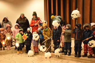 Schleching – Schon seit Wochen beschäftigten sich die kleinen Besucher des Kinder- und Waldkindergartens mit dem Heiligen Martin. Die Kindergartenleiterinnen Maxi Mayer und Irmi Klauser machten mit den Kindern Rollenspiele, Bilderbücher wurden vorgelesen und ein Bilderkino angesehen. Gemeinsam haben sie die Laternen gebastelt, die Hortkinder schon selbstständig nach ihren eigenen Ideen. Und so fieberten alle dem Martinstag entgegen. Leider regnete es heftig, aber das hielt keinen davon ab, mit den Laternen in der Dunkelheit loszuziehen. Die Kinder hatten etliche Martins-Lieder auf den Lippen. Nach dem Rundgang durchs Dorf trafen sich alle wieder auf dem Dorfplatz. In diesem Jahr hatten die Schülerinnen und Schüler der Schlechinger Grundschule die Aufführung vom Heiligen Martin, der mit dem Bettler seinen Mantel und das Brot teilt, übernommen. Das Publikum war begeistert, wie intensiv die jungen Darsteller das Thema rüberbrachten. Anna aus der zweiten Klasse kam als „Heiliger Martin“ auf ihrem Pferd, den Bettler spielte Hanna aus der vierten Klasse. Die Kindergartenkinder hatten sich im Musikpavillon verteilt und beobachteten gespannt das Spiel. Zum Ende wurde auch noch das Martins-Brot verteilt. Die junge Schlechinger Jugendkapelle unter Leitung von Marlene Noichl begleitete die Veranstaltung, sie spielten ordentlich auf und alle Kinder sangen die bekannten Laternen-Lieder.