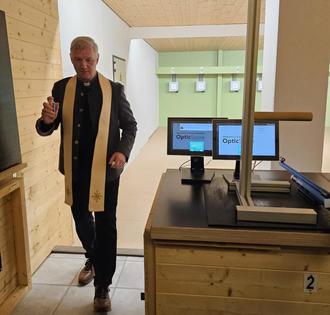 Pfarrer Martin Straßer bei der Weihung des neuen Schießstandes
