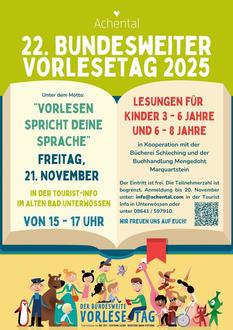 Vorlesen verbindet, es regt die Fantasie an, schafft Nähe und macht einfach Spaß. Deshalb steht am Freitag, den 21. November 2025, wieder alles im Zeichen des Bundesweiten Vorlesetags. Gemeinsam mit der Bücherei Schleching und der Buchhandlung Mengedoht lädt der Achental Tourismus zu einem gemütlichen Lesenachmittag in die Tourist Info im Alten Bad Unterwössen ein.