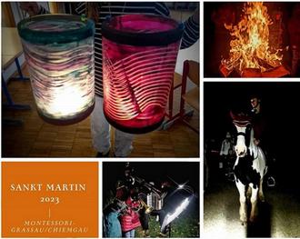 Kindergarten, Grundschule und Sekundarstufe des Montessori-Hauses Grassau/Chiemgau begingen gemeinsam in feierlicher Atmosphäre den Gedenktag an Martin von Tours. In der Tradition der katholischen Kirche ist der ehemalige Bischof der französischen Stadt Tours einer der bekanntesten Heiligen überhaupt. Im Werkunterricht gebastelte Laternen, eigenhändig gebackene Lebkuchen von Kindergarten- und Schulkindern, ein echtes Martinspferd, sowie schmackhafte Bewirtung vom Elternbeirat und musikalische Umrahmung durch Peter Anner (Akkordeon) und die Blechbläser um Stefan Fußeder – all das ließ den Martinszug zu einem vielseitigen Event für alle Sinne werden. Das bisschen Regen konnte da der schönen, idyllischen Stimmung keinen Abbruch tun.