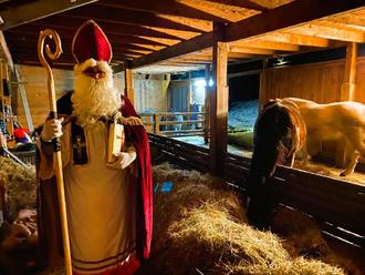 Die Feier begann um 17:00 Uhr, als die Dunkelheit langsam hereinbrach und die Lichter um den Hof herum ein warmes, einladendes Leuchten verbreiteten. Gemeinsam wanderten Kinder, Eltern und Pädagog:Innen den stimmungsvoll beleuchteten Weg hinauf zum Eselstall und versammelten sich in freudiger Erwartung, den Nikolaus zu treffen, der traditionell Geschenke und Freude bringt.