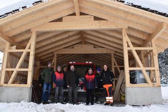 Alois Steiner und Hannes Prasser vom Skiclub Schleching erzählen, dass sie alle gemeinsam 410 Stunden ehrenamtliche Arbeit geleistet haben, um dieses Projekt auf die Beine zu stellen. Jetzt sind Skiclub und Gemeinde sehr froh, dass die Pistenraupe einen perfekten Unterstellplatz gefunden hat. wun
