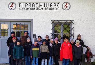 Vor Kurzem hatten wir eine besondere Schulstunde. Wir besuchten das E-Werk, nachdem wir im Sachunterricht schon viel über das Thema Strom und Stromerzeugung gelernt hatten. Herr Glück, der Opa von unserem Lucas, empfing uns bei den dicken Abflussrohren des E-Werks am Alpbach. Weil nur eine Turbine lief, kam auch nur aus einem Rohr Wasser. Am „Trafohaiserl“ vorbei marschierten wir ins E-Werk hinein. Dort trafen wir auch Herrn Riedlsperger und beide Experten zeigten uns die riesigen Turbinen und Generatoren. An der alten Schaltanlage durften wir dann alle Knöpfe drücken und Hebel umlegen. Lucas durfte sogar die große Turbine ausschalten, so dass der Generator für kurze Zeit keinen Strom erzeugen konnte. Trotzdem blieb das Licht an! Wir wissen warum, verraten es aber nicht. Einige Kinder haben immer noch das schöne Gemälde an der Wand in Erinnerung. Als wir uns verabschiedeten, bekamen wir noch tolle Taschenlampen geschenkt. Vielen Dank dafür und für die geduldigen Erklärungen!