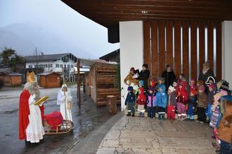 Schleching – Lange vor dem Nikolaustag haben die Kinder passende Lieder einstudiert. Aufgeregt standen sie im Musikpavillon und haben ganz laut gesungen, damit der Nikolaus den Weg zu ihnen auch bei Sturm und Regen findet.