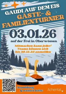 Neben Bewirtung und Musik sind zwei besondere Wettbewerbe geplant: Am 3. Januar 2026 ab 14 Uhr ein Gästeturnier und am 10. Januar 2026 von 10 bis 18 Uhr die Achental Meisterschaft für einheimische Vereine, Betriebe und Gruppen. Ob Einsteiger oder geübte Spieler, bei beiden Turnieren steht der Spaß im Vordergrund. Gemeinsam wird gelacht, angefeuert und um jeden Zentimeter zur Daube gekämpft. Außerhalb der beiden Wettkampftage können Interessierte eine Bahn für zehn Euro pro Stunde buchen. Die Veranstalter verleihen kostenlos Eisstöcke für Erwachsene und für Kinder. Eigene Stöcke sind natürlich auch gerne gesehen.