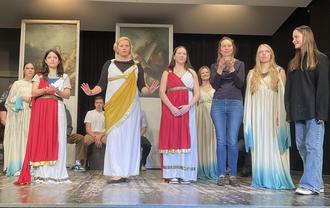 In kleinen Theaterszenen wurden die antiken Götter und ihre Eigenheiten lebendig dargestellt. Keck erläuterte beispielsweise Venus, dass mit ihrer Hilfe keine Schönheitsoperation nötig sei. Sophia Apfel, Elina Ruye und Lukas Speicher demonstrierten die schuleigene Gladiatorenausrüstung, ehe Klara Wagner und Elena Meinecke in einem unterhaltsamen Vortrag von der Entstehung Roms sprachen. Anschließend ging es mit Ella Mc Grow, Luise Schreib und Antonia Fußeder zum Ausbruch des Vesuv und zur Zerstörung Pompeijs. Dazu wurden auch physikalische Experimente gezeigte.