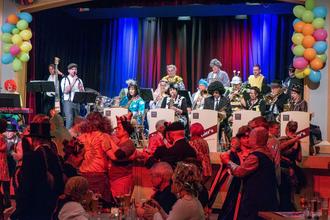 Immer wieder begeisterten Instrumental-Solisten in der von Schlagzeuger Michael Keul geleiteten Bigband aus dem Umfeld der Musikschule. Zum Faschingskonzert passte, dass sowohl die Musiker als auch ihr Publikum durchweg maskiert erschienen. Kostüme aus dem Berlin der 20-iger Jahre, Gäste, wie aus dem Wiener Opernball, Rock and Roller im Outfit ihrer Zeit. Dazu war die halbe Tierwelt unterwegs, manches Raubtier, andere direkt vom nahen Bauernhof. Die Stimmung beschrieb ein Tänzer, den wir befragten, mit einem Wort überzeugend: „Wunderbar“.