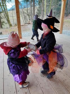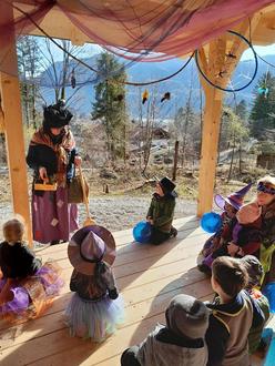 Die kleinen „Mankei“ verhexten ihren Waldkindergarten Schleching in der Faschingszeit in einen verzauberten Hexen- und Zaubererwald. So wurde um die Hütte ein richtiges Hexenambiente geschaffen, indem sich die wilden Hexen und geheimnisvollen Zauberer heimisch und wohl fühlten. Somit konnten sich die Kinder mit ihrer Rolle identifizieren und lebten diese in fantasievollen Spielen aus.