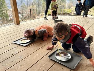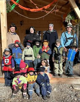 Die wilden Räuber trieben während der Faschingszeit ihr fürchterliches Unwesen im Waldkindergarten Schleching. Täglich durften die Waldkinder die spannenden Abenteuer aus den Geschichten vom „Räuber Hotzenplotz“ von Ottfried Preußler hören. Inspiriert von den lustigen Erlebnissen vom Räuber Hotzenplotz, dem Kasperl und Seppel, der Großmutter und Fee Amarillis, dem Wachtmeister Dimpflmoser und Zauberer Petrosilius Zwackelmann wurden diese Geschichten in ihre täglichen Rollenspiele integriert. Dabei identifizierte sich jedes Kind mit seiner individuellen Rolle und erlebte in seiner Fantasie eine imaginäre Räuberwelt, in der sie ihre Kreativität frei entfalten konnten. Als Höhepunkt wurde, passend zum Thema, am Unsinnigen Donnerstag ein lustiger wilder Räuberfasching im Waldkindergarten gefeiert. In originellen Verkleidungen kamen die wilden Räuber, Feen, Zauberer und Wachtmeister. Für die Räuberurkunde mussten die Kinder mutige und kraftraubende Geschicklichkeitsprüfungen bestehen wie beispielsweise, gefesselt paarweise hüpfen, von Baumstämmen springen und darauf balancieren, Baumstämme rollen, Löffellauf mit heißen Kartoffeln, Dosen werfen und ekelige Giftschlangen ohne Hände essen. Nachdem alle Waldkinder die Räuberprüfung mit Bravour bestanden hatten, wurden sie mit einer Urkunde zu professionellen Räubern ernannt. Dies wurde feierlich mit einem gigantischen Räuberbüfett, das die Eltern in liebevoller Arbeit zubereitet hatten, gebührend gefeiert. Nach dem Räubermahl hörten wir plötzlich die aufgeregte Stimme der Großmutter (Mona Weiser) die aufgelöst zu unserer Hütte gestürmt kam, um uns mitzuteilen, dass der Räuber Hotzenplotz ihre geliebte Kaffeemühle gestohlen hat und sie nun keinen Kaffee mehr mahlen kann. Die furchtlosen wilden Räuber erklärten sich sofort bereit, der Großmutter bei der Suche der Kaffeemühle zu helfen. Glücklicherweise hatte der Räuber Hotzenplotz auf der Flucht seine Fußspuren hinterlassen, diese führten die pfiffigen Räuberprofis sogleich zu verschiedenen Hinweisen, die mit Fragen zur „Hotzenplotz-Geschichte“ gespickt waren. Natürlich konnten die ausgebildeten Räuber alle Fragen mit Leichtigkeit beantworten. Zu guter Letzt kamen wir an die sagenumwitterte spektakuläre Räuberhöhle, in der sich die gestohlene Kaffeemühle und ein fantastischer Goldschatz befanden. Diesen teilten sich die Räuberkinder brüderlich untereinander auf und die Großmutter bekam sogleich ihre geliebte Kaffeemühle wieder zurück.