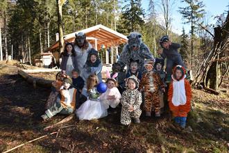 Schleching – Im Waldkindergarten tummelten sich Wölfe und Raubkatzen neben Hasen, Eichhörnchen, Rehen, Hirschen und Mäusen. „Fasching der Tiere“ war das Motto in diesem Jahr. Schon von weitem konnte man die fröhliche Schar im Wald hören. Es wurden Tierlieder gesungen, getanzt zur Musik und die so beliebten Spiele wie „Die Reise nach Jerusalem“ mit großer Begeisterung gespielt. Kindergartenleiterin Irmi Klauser und ihr Team hatten viele Ideen, die bei schönstem Wetter umgesetzt werden konnten.