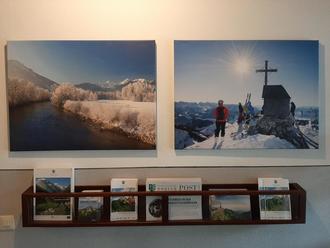 Einen Blickfang im Eingangsbereich des Bürgerhauses bildet die neu gestaltete Wand zum Thema „Bergsteigerdörfer“. Übersichtlich angeordnet findet der Besucher hier Broschüren, Kataloge und Wanderkarten.