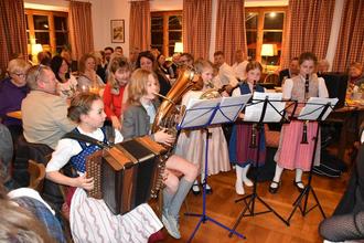 Der Auftritt der „Fetzigen Fünf“ war eine Uraufführung als neue Gruppe, sie spielen erst seit ein paar Wochen zusammen, sind zwischen 9 und 11 Jahren jung und haben offensichtlich die Musik im Blut. Sie spielten den „Augenstern Walzer“ so harmonisch mit Klarinetten, Horn, Tenorhorn und Ziach und bekamen einen kräftigen Applaus für ihr Debüt. Das Duo „Loider/Entfellner aus Oberwössen mit der Ziach wurde von ihrem Lehrer Stephan Prandtner mit der Gitarre begleitet. Schon sehr professionell spielte Vitus Detsch aus Übersee seine Ziach mit dem „Sommernachtswalzer“, er absolviert seine weitere Ausbildung inzwischen in Salzburg. Ebenso der 18jährige Lukas Auer, Instrumentalist aus Unterwössen, der mit der Orgel, Klavier, einer Posaune oder Klarinette gekonnt umgehen kann und aus alter Verbundenheit auch gern bei der Wirtshausmusi noch vorbeischaut, diesmal mit der Ziach und dem „Edla Boarischer“.