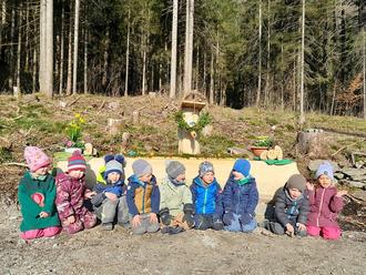 Wir sehen unseren Erziehungsauftrag auch darin, den Kindern christliche Werte wie Nächstenliebe, Hilfsbereitschaft, Rücksichtnahme, Wertschätzung, Achtsamkeit, Respekt und Toleranz zu vermitteln, aber auch mit dem christlichen Glauben unserer Heimat vertraut zu machen. Aus diesem Grund haben wir mit den Kindern während der Osterzeit im Waldkindergarten mehrere religiöse Einheiten zum Ostergeschehen durchgeführt. Mit einer kindgerechten einfühlsamen religiösen Methodik des Religionspädagogen Franz Kett, wurde den Kindern dieses sensible Thema nahegebracht.