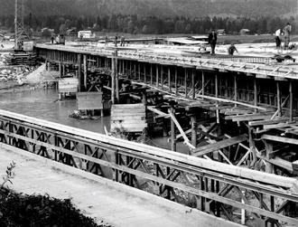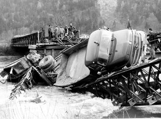 Das Foto von dem verunglückten Lkw hat Helene Müller, Fotowerkstatt Schleching gemacht, das vom Bau der neuen Brücke A.W.Rammel, Bad Aibling.