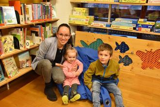 Kristina Butz mit ihren Kindern Franziska und Korbinian, die gleich das Angebot für Kinder in der Bücherei inspizierten.
