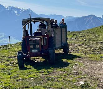 Christian Tegethoff, Almbauer: „Für uns Almbauern ist es eine schöne Gelegenheit mit den Teilnehmern ins Gespräch zu kommen und zu zeigen, was im Hintergrund alles gemacht werden muss, um unsere Kulturlandschaft, die Artenvielfalt und die Almflächen zu erhalten.“ Mit der diesjährigen Schwendaktion konnte den Almbauern an nur einem Tag die Arbeit einer ganzen Woche abgenommen werden. Für Gäste und Einheimische war schon der Weg nach oben mit landwirtschaftlichen Maschinen ein besonderes Erlebnis. Nach getaner Arbeit wartete als Dankeschön der Almbauern eine deftige Brotzeit auf alle Helfer und Helferinnen. Bei traumhaften Ausblicken ins Tal und bester Stimmung wurde gemeinsam über das Almleben und die Herausforderungen für die Almbauern gesprochen.