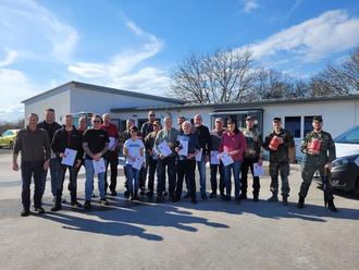 Um 9.00 Uhr traf man sich an der Infanterieschule Hammelburg und nach einer fachgerechten Einweisung über die Gefahren, Handhabung und Sicherheitsvorschriften ging es zum Schießen. Es wurde mit dem Gewehr G36 und dem Maschinengewehr MG 3 auf Zielscheiben bis zu 200 m gefeuert.