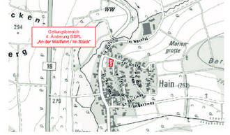 Der räumliche Geltungsbereich der Bebauungsplanänderung umfasst eine Gesamtfläche von ca. 770 m² und beinhaltet eine Teilfläche des Grundstückes Fl. Nr. 103/1 der Gemarkung Hain.