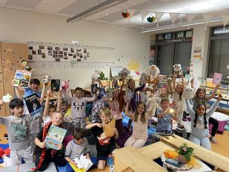 Nachdem wir nach der Schule erst einmal nach Hause gegangen sind, haben wir unsere Sachen für die Übernachtung gepackt und sind zur Schule gefahren. Da haben wir unsere Sachen für das Buffet auf eine lange Reihe von Tischen gestellt. Dann haben wir unsere Schlafplätze vorbereitet. Ich lag neben Karla und Lea. Danach sind wir zur Bücherei gegangen und haben uns da Bücher ausgeliehen. Frau König hat uns etwas vorgelesen. Nach der Bücherei haben wir eine Lesespur-Geschichte gemacht.
