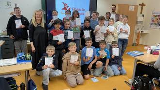 Nina Sutcenko (6a) erreichte die höchste Punktzahl der Schule und sicherte sich damit den ersten Platz – als besondere Auszeichnung erhielt sie ein exklusives Känguru-T-Shirt. Den zweiten Platz belegte Nicola Vrinceanu (6b), gefolgt von Lucas Veeth (5b) auf Rang drei. Doch auch alle anderen Teilnehmenden gingen nicht leer aus: Jede Schülerin und jeder Schüler erhielt eine Urkunde sowie ein spannendes Knobelrätsel als Anerkennung für das engagierte Mitmachen.