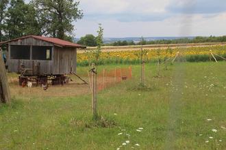 Geförderte Streuobstbäume in einer Schrebergartenanlage in der Umgebung von Gochsheim.