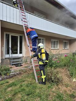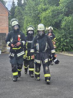 Wir nahmen bei der Übung mit unserem mittleren Löschfahrzeug teil. Vor Ort stellten wir 2 Trupps mit schwerem Atemschutz. Das Einsatzstichwort lautete „B3 Personen vermisst“. Unsere beiden Trupps begaben sich in das Brandobjekt und retteten mehrere Personen. U.a. wurde eine Steckleiter in Stellung gebracht. Im Anschluss unterstützten wir die Kameraden der Feuerwehren Euerbach, Obbach und Sömmersdorf bei der Brandbekämpfung. Begleitet wurde die Übung unter den Augen der 1. Bürgermeisterin der Gemeinde Euerbach. Wir bedanken uns für die Einladung der Kameraden aus Euerbach. Es hat sich gezeigt, dass eine gemeindeübergreifende größere Übung das erlernte Wissen weiter verfestigt. Im Anschluss wurde die Übung ausführlich besprochen und nachbereitet. Nach ca. 3 Stunden traten wir wieder unsere Heimreise an.