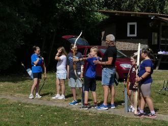 Treffsicher mit Pfeil und Bogen: die Kinder aus der Gemeinde Poppenhausen beim Ferienspaß in Hain.