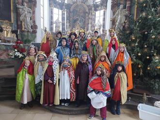 21 Kinder zwischen 7 und 17 Jahren zogen wie jedes Jahr in Gruppen von Haus zu Haus und sammelten unter dem Motto "Schule statt Fabrik - Sternsingen gegen Kinderarbeit" Geld für bedürftige Kinder in Bangladesch und der Welt.