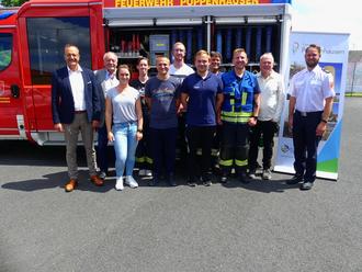 Ein kleines Präsent übergab Ludwig Nätscher an die Feuerwehrleute und überbrachte auch den Dank von Martina Gießübel. Die Landtagsabgeordnete lud die Gruppe zu einen Besuch nach München in den bayerischen Landtag ein.