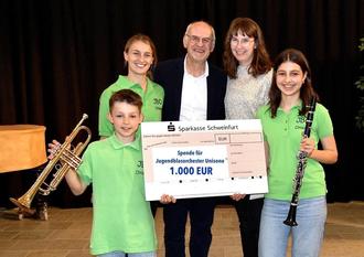 Mit einer Spende von jeweils 1000 Euro wurden bedacht: Jugendblasorchester Unisono der Musikvereine Kützberg-Maibach-Pfersdorf-Poppenhausen, Bläserklasse und Jugendorchester im Musikverein Obereuerheim, sowie die neu entstehende Bläserklasse der Grundschule Schonungen.