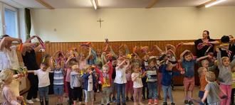Da auf das Wetter leider kein Verlass war, planten wir kurzfristig um und verlegten die Veranstaltung in den Gemeindesaal. Dort begrüßten die Kinder die Familien mit Liedern und Tänzen. Nach einer kleinen Stärkung an unserem reichhaltigen Buffet zeigten die Kinder ihren Omas und Opas stolz ihren Kindergarten. Und auf einmal kam die Sonne zum Vorschein, so dass die Familien im Haus als auch im Garten einen schönen Nachmittag verbringen konnten.
